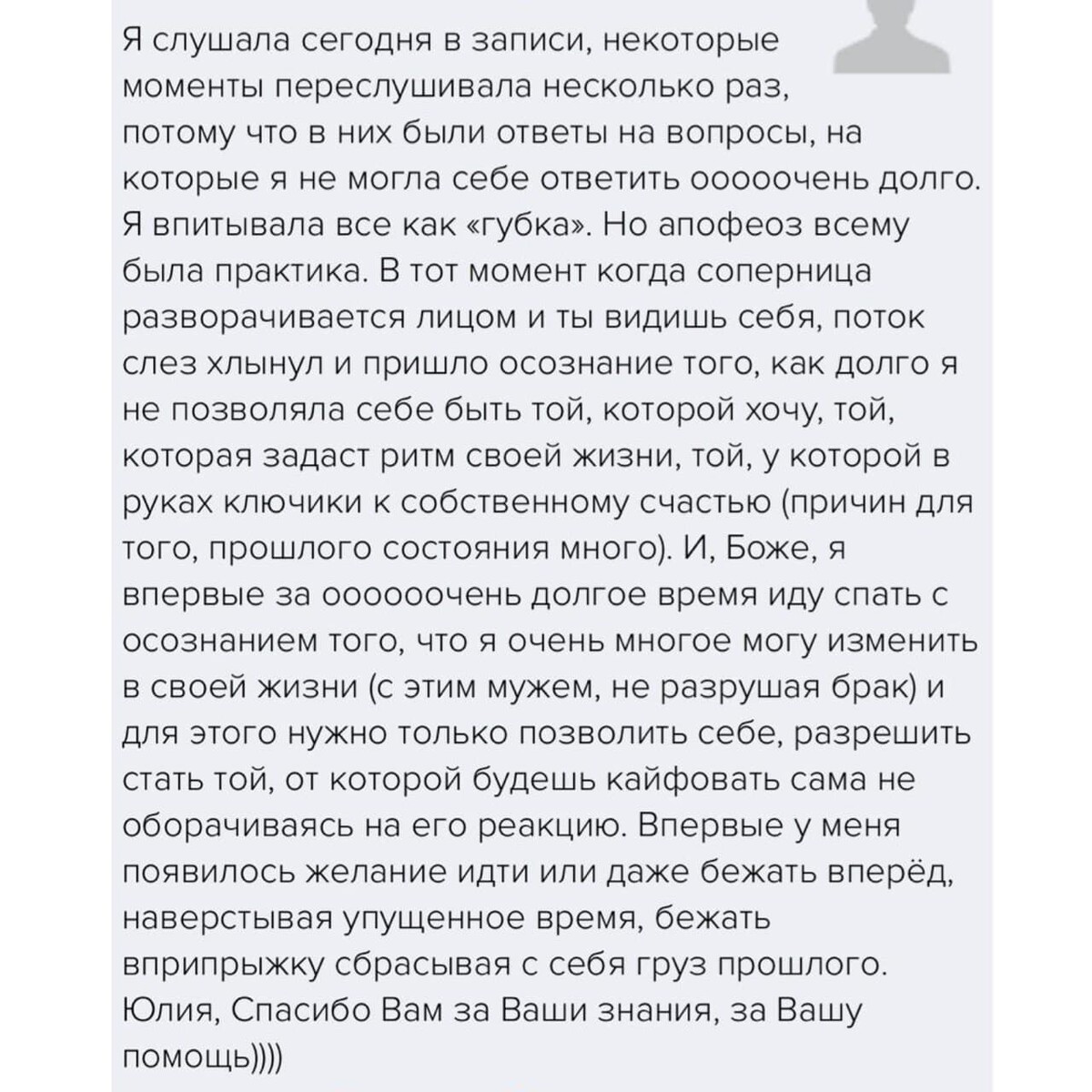Своим профессиональным и женским опытом я делюсь в своем телеграм-канале. Но каждая ситуация очень индивидуальна. И для того чтобы выйти из кризиса в отношениях, разобраться в себе, снять болевую точку нужна серия индивидуальных консультаций с психологом, а иногда даже с психотератевтом.