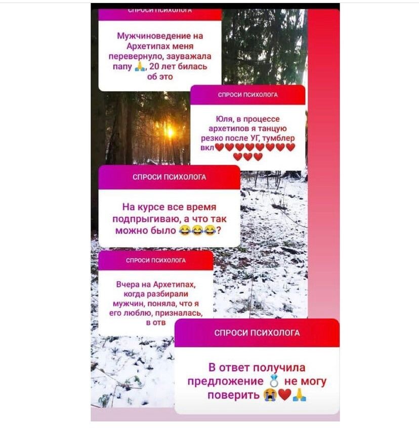 Своим профессиональным и женским опытом я делюсь в своем телеграм-канале. Но каждая ситуация очень индивидуальна. И для того чтобы выйти из кризиса в отношениях, разобраться в себе, снять болевую точку нужна серия индивидуальных консультаций с психологом, а иногда даже с психотерапевтом.